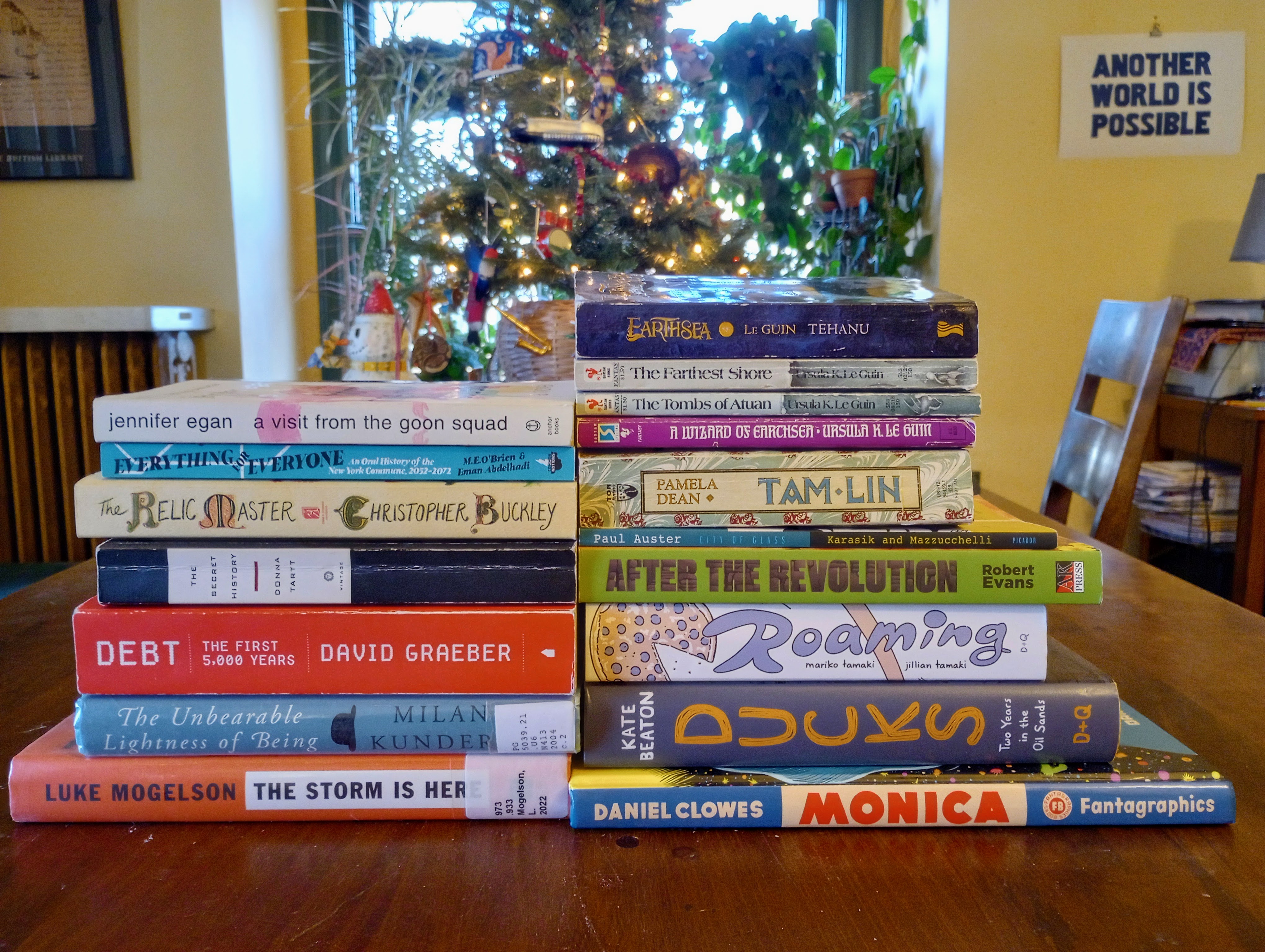Debt: The First 5,000 Years and Fragments of an Anarchist Anthropology by David Graeber. I had planned to read everything by David Graeber this year, and while that didn’t happen, I think it actually shows how setting ambitious reading goals helps me in that it pushes me to actually finish some longer, more challenging books. I need to go back and look at my notes on Debt, but it had a lot of interesting ideas about slavery, property, honor, violence, and so on. I look forward to taking on his other big fat theory of everything book that was published posthumously, The Dawn of Everything.